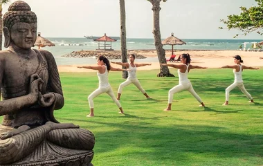 在晨間一邊享受輕柔的海風吹拂臉龐,一邊體驗瑜珈釋放身心靈。